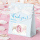 A photo baby shower party favour box. Thank you elegant script typography. Personalise the name and the date. Blue colours for a baby boy babyshower party celebration. Great party supplies for a new baby. There is a white star pattern on the back side of the favour box.