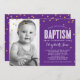 PHOTO BAPTISM cute gold glitter confetti purple Invitation