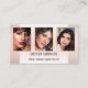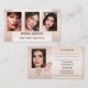 An elegant appointment business card featuring 3 photos of your choice (optional) framed by a peach pink design on the front. On the back is space for another photo with lines to add appointments. The flower on the back is a separate image and can be dragged, scaled or also deleted if you do not need it. A beautiful business card for a beautician or make-up artist.