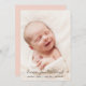 Photo Birth Announcement Card Peachy Pink Back