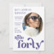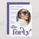 "Hello Forty" Birthday Invitation with Photo and dusty purple text.