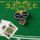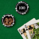 These custom poker chips feature a bold number on the front instead of initials, which can be personalized with any number up to four digits. The front has a sleek black background with crisp white fonts for a classic, striking look. The back includes space for a photo, making them perfect for weddings, mancaves, bachelor parties, or as a memorable gift. All text, numbers, and details can be fully customized to fit your style or event theme.