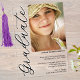 Create your own graduation party invites with these trendy clear acrylic invitation cards featuring your grad's photo. Easy to personalise, just add your photo that will appear in the upper right hand corner. GRADUATE in a large black girly script font is turned sideways up the left hand side for interest. Two sets of text templates with a simple black font are simple to edit - add your graduate's name in the bold type immediately under the photo then add your graduation party information. Blending the elegance of the girly script font with the modern feel of sleek clear acrylic, these graduation party invitations can also be reworded and used as graduation announcements if you like.