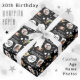 A fun photo collage of confetti for a 30th birthday wrapping paper with a customised name to wrap all you birthday gifts in. Bold graphics of confetti in triangles, ovals, rectangles, circles and squares in Black and White. The black background makes a dramatic look for white confetti and photos.