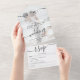 Photo black white initials script wedding all in one invitation
