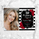 Elegant floral feminine 50th birthday invitation with your photo. Glam black white red design with faux glitter silver. Features black and white stripes, red roses, script font and confetti. Perfect for a stylish adult bday celebration party. Personalise with your own details. Can be customised for any age! Printed Zazzle invitations or instant download digital printable template.
