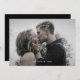 Couple names Holiday Christmas Card. Photo covers entire front. Message. White Text. Simple. Filter applied to photo.