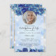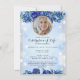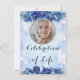 Photo Blue Sparkly Floral Gold Celebration of Life Invitation