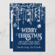 Photo Blue and White String Lights Christmas card with a cute whimsical fun and festive holiday greeting.
