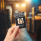 Modern photo business ID identification card with barcode over white floral lace background. Additional information can be added to the backside of this business ID badge