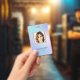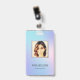 Modern photo business ID identification card with barcode over colourful hologram background. Additional information can be added to the backside of this business ID badge