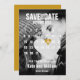 Move the romantic gold love heart to your special date and personalise with your names and photo to create a unique save the date card. Designed by Thisisnotme©