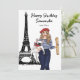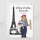 The front of the card features a captivating design showcasing a chic girl and an adorable French Bulldog posing together in front of the iconic Eiffel Tower. The image exudes charm, elegance, and the undeniable bond between a girl and her furry friend, setting the perfect tone for a memorable birthday celebration.