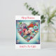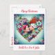 Pretty teal background with red roses and colourful flowers whimsical folk art style floral heart. Add a picture of you and your partner in the personalise area. Sweet romantic card for Christmas.