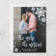 The more the merrier Photo Christmas Pregnancy Announcement cards. Expecting parents! Modern white hand lettered typography "the more the merrier!" script card to share your happy news with family and friends. Features a white handwritten script, snowflakes overlay and full photo. You can personalise the design by replacing the sample text and photo. #3343 If You need help or matching items please contact to me!