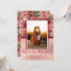Photo Christmas Pregnancy Announcement Cards. Expecting parents! Chic vintage pink red floral pale violet red roses with green leaves design features hand lettered typography script ”more the merrier" text on victorian floral background and faux rose gold foil block. Elegant card to share your happy news with family and friends in the holiday season. At the backing pink red rose floral background. You can personalise the design by replacing the text and vertical photo. Perfect girly, romantic design for all occasion. If you need help or matching items please contact to me. #3346