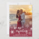 Photo Christmas Pregnancy Announcement Cards. Expecting parents! Modern white hand lettered typography "we are expecting" script card to share your happy news with family and friends in the holiday season. At the backing red colour background with white snowflakes. You can personalise the design by replacing the sample text and vertical photo. #3343 If You need help or matching items please contact to me!