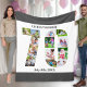 Custom Picture Blanket with 13 of your favourite photos. This stylish photo collage is in the shape of the number 70 on a white background with charcoal grey borders. The blanket can also be personalised with the name and birth date of your choice. The template is set up ready for you to add your family photographs, selfies and pictures, working in a clockwise direction from the top of each number. Please browse our store for coordinating 70th birthday cards and alternative personalised photo gifts.