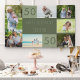 Personalised banner celebrating an 50th Birthday. The photo template is set up for you to add 7 of your favourite photos which are displayed in a photo collage around the birthday greeting. The wording simply reads "Happy Birthday [your name]" in casual typography. "50" is actually editable if you would like this design for a different birthday. This design has a neutral colour palette of sage green - other colours with editable ages are available in my store.