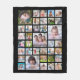 Wrap your loved ones in comfort and photo memories with this personalised photo blanket featuring an easy-to-upload photo collage template with 36 square pictures and personalised with your custom text over the centre photo. Soft and cosy, this blanket is available in multiple sizes and makes a heartfelt gift or a meaningful addition to your own home décor. Perfect for snuggling on the couch, displaying as a keepsake or commemorating a special occasion or milestone. BLANKET OPTIONS: The sample is shown in the Medium 50x60" Fleece blanket--other sizes are available on the ordering page or transfer to a Sherpa blanket or other product. ASSISTANCE: For help with design modification, resizing or transferring the design, contact the designer BEFORE ORDERING via the Zazzle Chat MESSAGE tab or email makeitaboutyoustore@gmail.com.