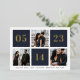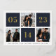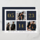 Announce your upcoming nuptials with these chic save the date cards featuring three of your favourite square photos and your wedding date in a gridded layout with alternating navy blue squares. "Save the Date" appears beneath along with your names and wedding location.