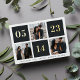 Announce your upcoming nuptials with these chic black and white save the date cards featuring three of your favourite square photos and your wedding date in a gridded layout. "Save the Date" appears beneath along with your names and wedding location.