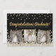 Elegant custom graduation card design featuring gold and silver confetti over a black background, modern script typography with the words "Congratulations Graduate" (in gold) with your name and custom year (in silver) plus three of your favourite photos framed in metallic gold foil on the front of the card. Templates for your message and name(s) are on the back of the card.