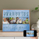 Create your own photo collage for your grandparents. This modern style poster in blue will look charming and all grandparents love having photos of their grandchildren. The wording reads "grandkids make life grand" and frames your photo strip. The template is set up ready for you to add your own pictures and these are displayed square shape in a single row of 4. Please browse our store for more grandparent gifts.