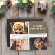 Modern holiday photo collage magnet card with three photos. Add three of your favourite holiday photos to the card. The merry Christmas text is in trendy and modern white font on a grey background. Personalise with your name. The card is great for a young single person who would like to wish merry holidays to their friends and family.