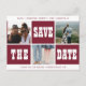 Modern contemporary geometric style bold typography save the date wedding postcard in dark navy blue and white with a collage of three square photos. ++++++ Personalise it with your photos and details! +++++++++++++++++++ Please note that the burgundy background colour and the colour and fonts of lettering are changeable on both sides. You can change them after selecting CUSTOMIZE option.