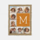Photo Collage Monogram Rustic Kraft and Orange Fleece Blanket