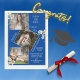 Personalised 4 photo collage graduation party announcement with blue background. Accented with sweet watercolor white daisies. Simple and sweet. Add your special photos to create your own personal announcement. Other colours and styles available.