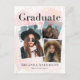 This minimalist and modern graduation announcement postcard features 3 photos on a blush pink background in watercolor. Personalise it for your needs. You can find matching products at my store.