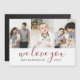 Affordable custom printed Valentine's Day card magnets personalised with your photos and text. This modern minimalist design features a photo collage with 3 photos and chic script text that reads "We Love You - Happy Valentine's Day Daddy" or you can customise it with your own special message. Use the design tools to change the background colour, add more photos, edit the text and customise the fonts and colours to create your own unique Valentine greeting cards for dad and grandpa.