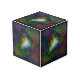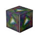 Dark coloured trippy kaleidoscopic design, in a cubic pattern shape