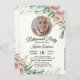 Get Yourself a Custom Retirement party invitation with your own photo inside it. The design is so elegant and modern that features a botanical and foliage style with gold lines that complement the greenery style. Also, there is a chic frame of beads where you can add your photo to make the invitation extra special and customisable.
