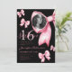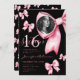 PHOTO Cute Coquette Blush Pink Bow Sweet 16 Black Invitation