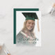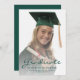 Modern graduation announcement featuring a custom vertical photo. The word "Graduate" appears in dark green script, with the graduate's name, school and year of graduation below in sans serif font. Easily replace the sample image with your own graduate's photo. A white gradient screen helps ensure the text pops. The reverse is solid dark green. Ideal for high school or college graduation.