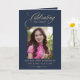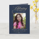 Photo Elegant Blue Gold Funeral Keepsake Program