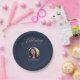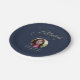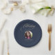 Photo Elegant Blue Gold Script Funeral Memorial Paper Plate