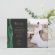 Send your family and friends a special wedding thank you with these custom photo cards. On the left, the words "thank you" appear in elegant rose-coloured handwriting script typography on a slate black background over a brief, editable message of thanks to your wedding guests in copperplate font, with your names below. An emerald green watercolor agate border trimmed with faux rose gold glitter decorates the left edge. The reverse side provides space for a second, horizontal photo.