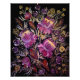 A vibrant painting of lilac flowers on a dark background in the traditional Petrykivka style. The composition features intricate floral patterns, with delicate, sweeping brushstrokes that create a sense of movement and elegance. The flowers are surrounded by ornate leaves and small decorative details in shades of green, yellow, and white, contrasting beautifully with the dark backdrop.