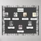A three-generation photo family tree is featured on a dark grey background on this poster. Personalise with your own ancestors' photos and names. The poster is bordered with a white vintage lace look border. If you need help personalising, please contact me.