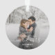 Commemorate the first Christmas of your marriage with this beautiful modern keepsake ornament. The white text reads "Our first Christmas as Mr & Mrs," with the words "Mr & Mrs" in elegant handwriting script with flourishes before and after. Replace the sample image with your favourite photo, and add your last name and the year. A dark gradient filter helps make the text pop.