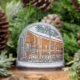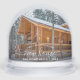 Commemorate your first Christmas in your new home with this beautiful modern keepsake snow globe. The white text reads "First Christmas in our new home," with the words "new home" in elegant handwriting script with flourishes before and after. Replace the sample image with a photo of your new house and add your family's last name. A dark gradient filter helps make the text pop.