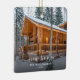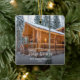 Commemorate your first Christmas in your new home with this beautiful modern keepsake ornament. The white text reads "First Christmas in our new home," with the words "new home" in elegant handwriting script with flourishes before and after. Replace the sample image with a photo of your new house and add your family's last name and the year. A dark gradient filter helps make the text pop.