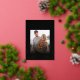 This elegant wedding invitation features a photo and gold foil flowers on a black background. Bride and groom names in an elegant modern font.