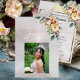 This divine invitation embellished with a floral bouquet and placeholder for the young lady's photo on a pearl white background Details for the event are on the back. "Quinceanera" and the girl's name are in foil. Designed to coordinate with the "Cream Floral on Pastels" Quinceanera Collection. To change details, click «Personalize». To move the text or change the text size, font, or color click «Click to customize further» initials