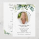 Personalise this simple and elegant program with the name, photo and message of your departed loved one. Honour and celebrate the life of your loved one with this modern eucalyptus floral funeral program template. Easy to customise text and photo. Our heartfelt condolences and prayers are with you during this very difficult time.