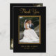Photo Gold Script On Black Wedding Thank You Card